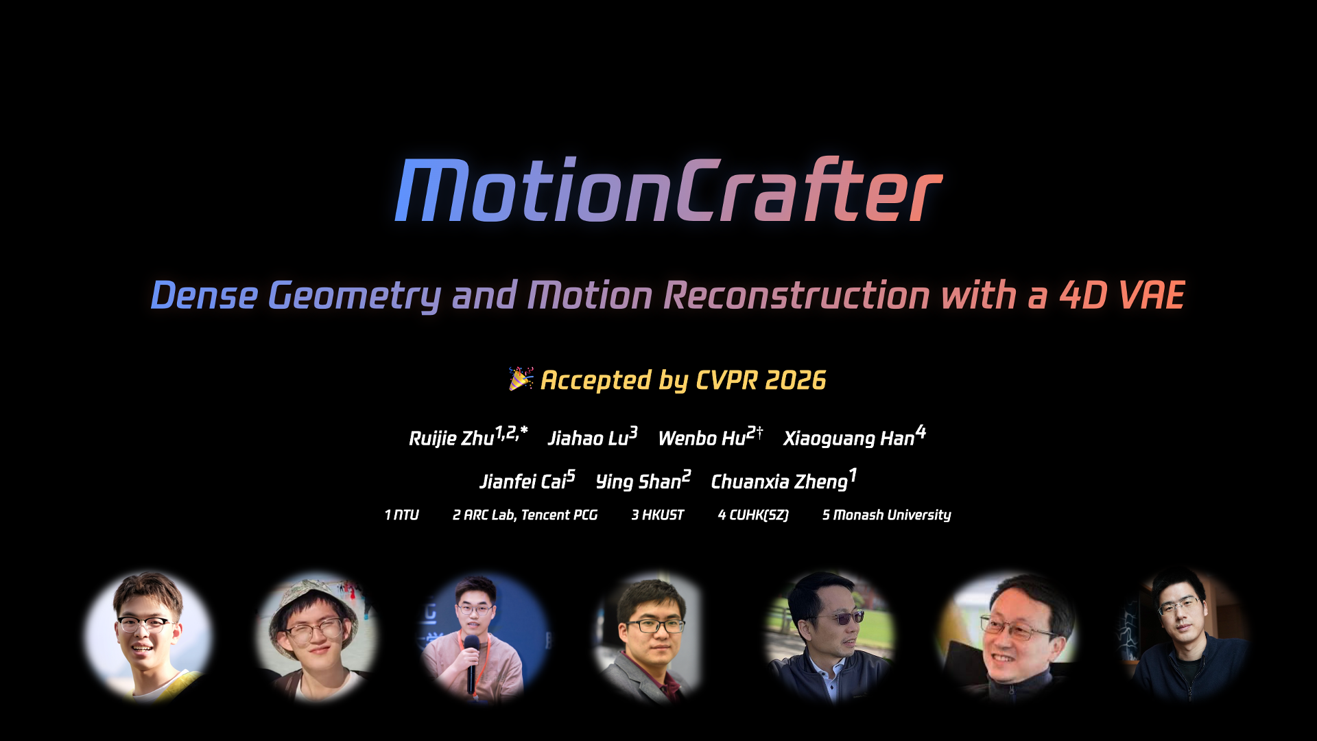 ![]() | MotionCrafter: Dense Geometry and Motion Reconstruction with a 4D VAE CVPR 2026, Denver |